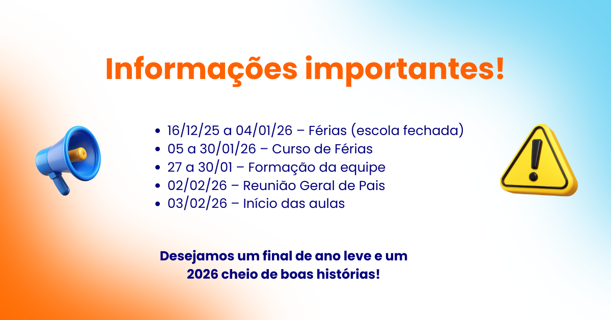 Nos dois primeiros dias, os responsáveis podem permanecer na escola, oferecendo segurança nesse momento de chegada. O bem-estar da criança é nossa prioridade, e qualquer ajuste na rotina será feito com base em suas necessidades emocionais e no diálogo com a família.