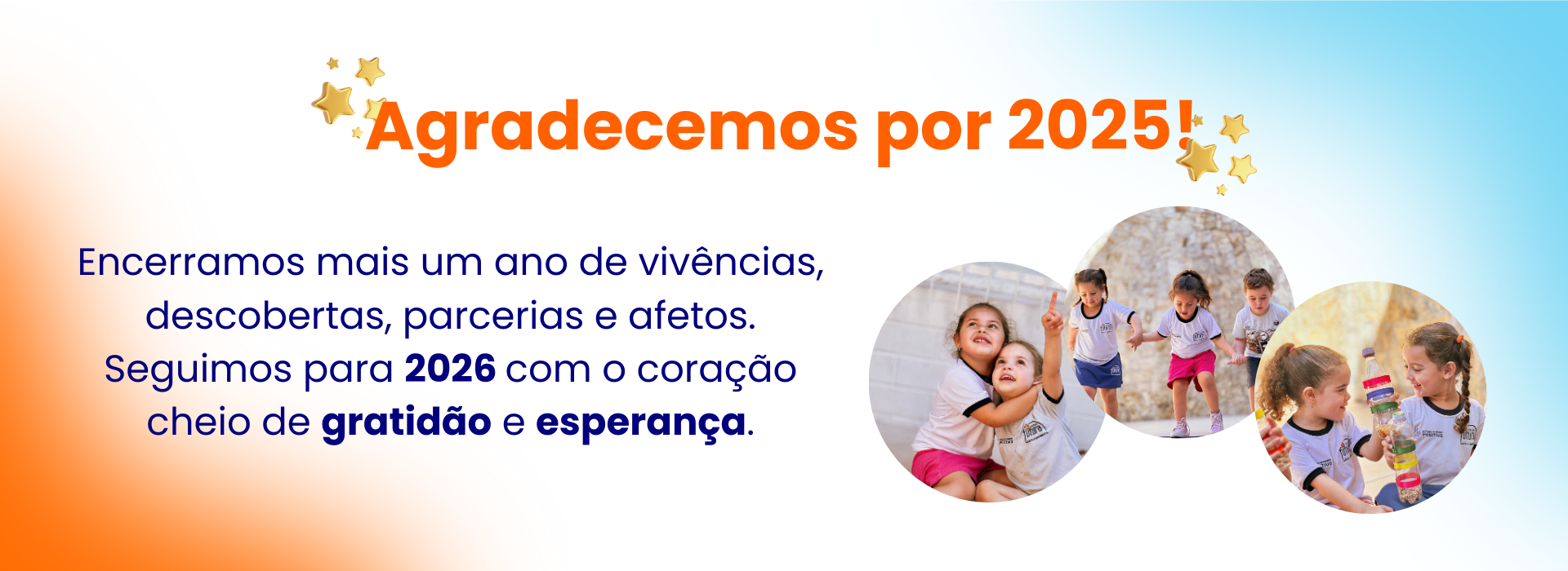 Nosso trabalho é guiado por um projeto pedagógico sólido, que reflete nosso compromisso com uma educação de qualidade e com o desenvolvimento integral das crianças. Preparamos nossos pequenos para um futuro brilhante, com base em valores, metas e sonhos que nos movem todos os dias.