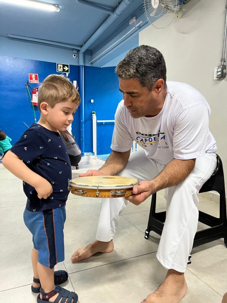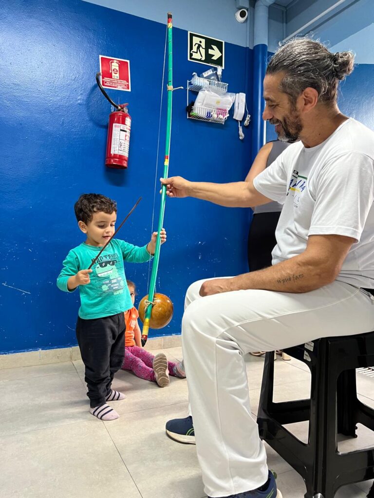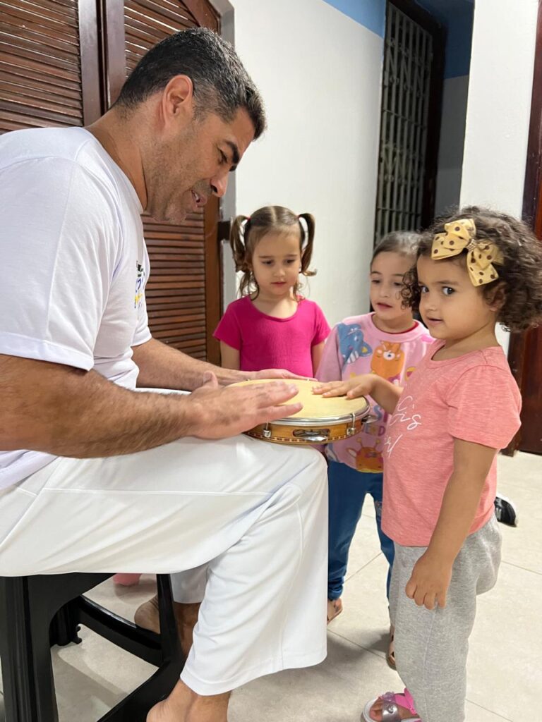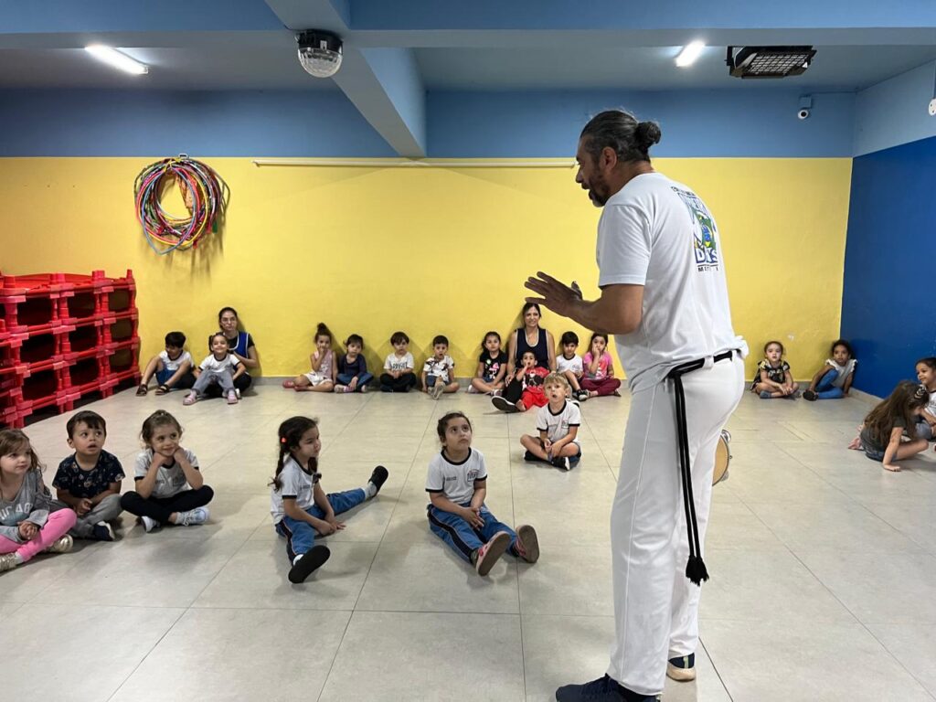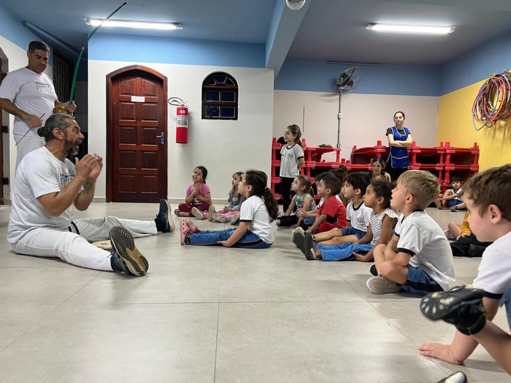 - Apresentação de capoeira com o Grupo Capoeira Brasil, que trouxe ritmo, musicalidade e ancestralidade para dentro da escola.