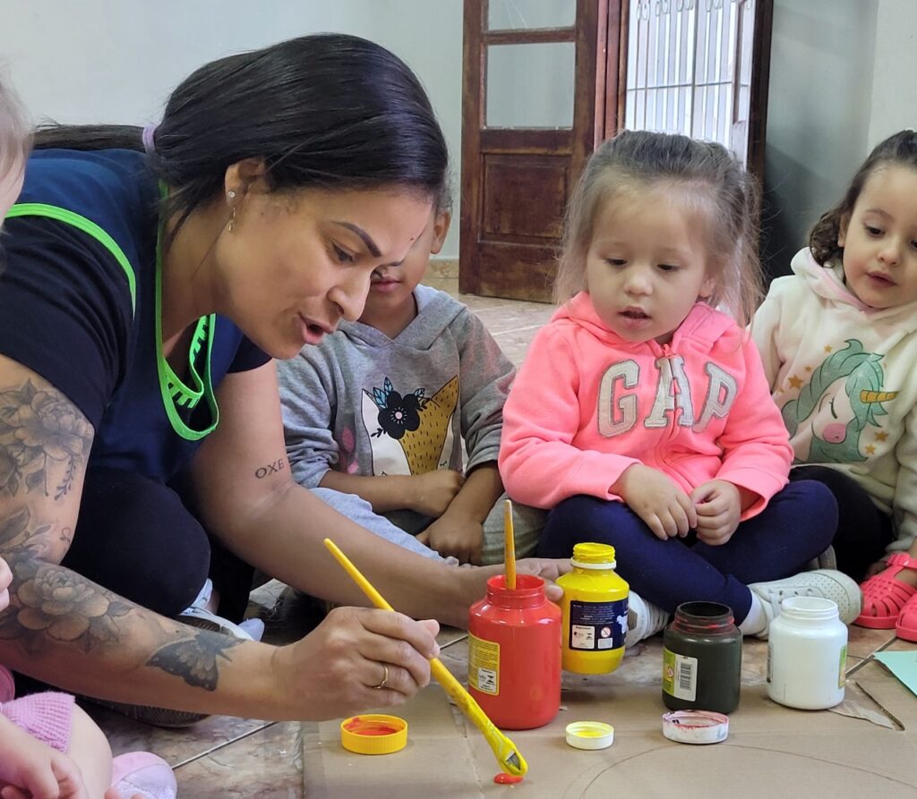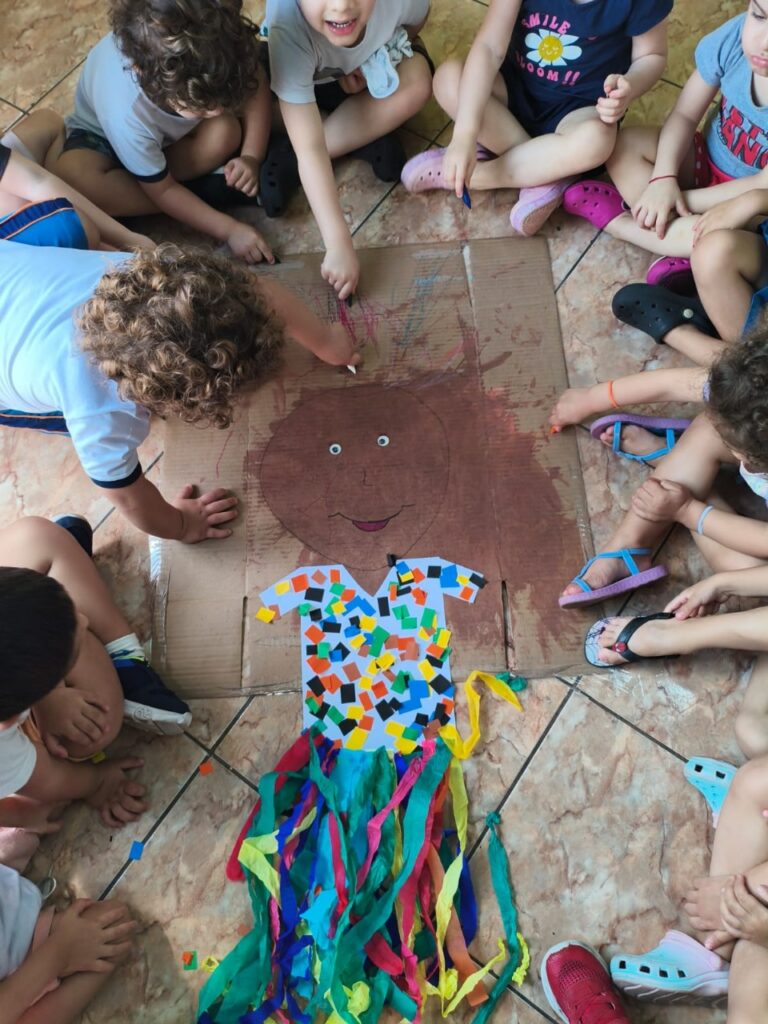 As crianças exploraram histórias, artistas, ritmos, instrumentos, sabores e personalidades negras que marcaram nossa história. Teve criação de máscaras africanas, mistura de tons de pele, construção de instrumentos, culinária com ingredientes típicos e rodas de conversa cheias de descobertas.